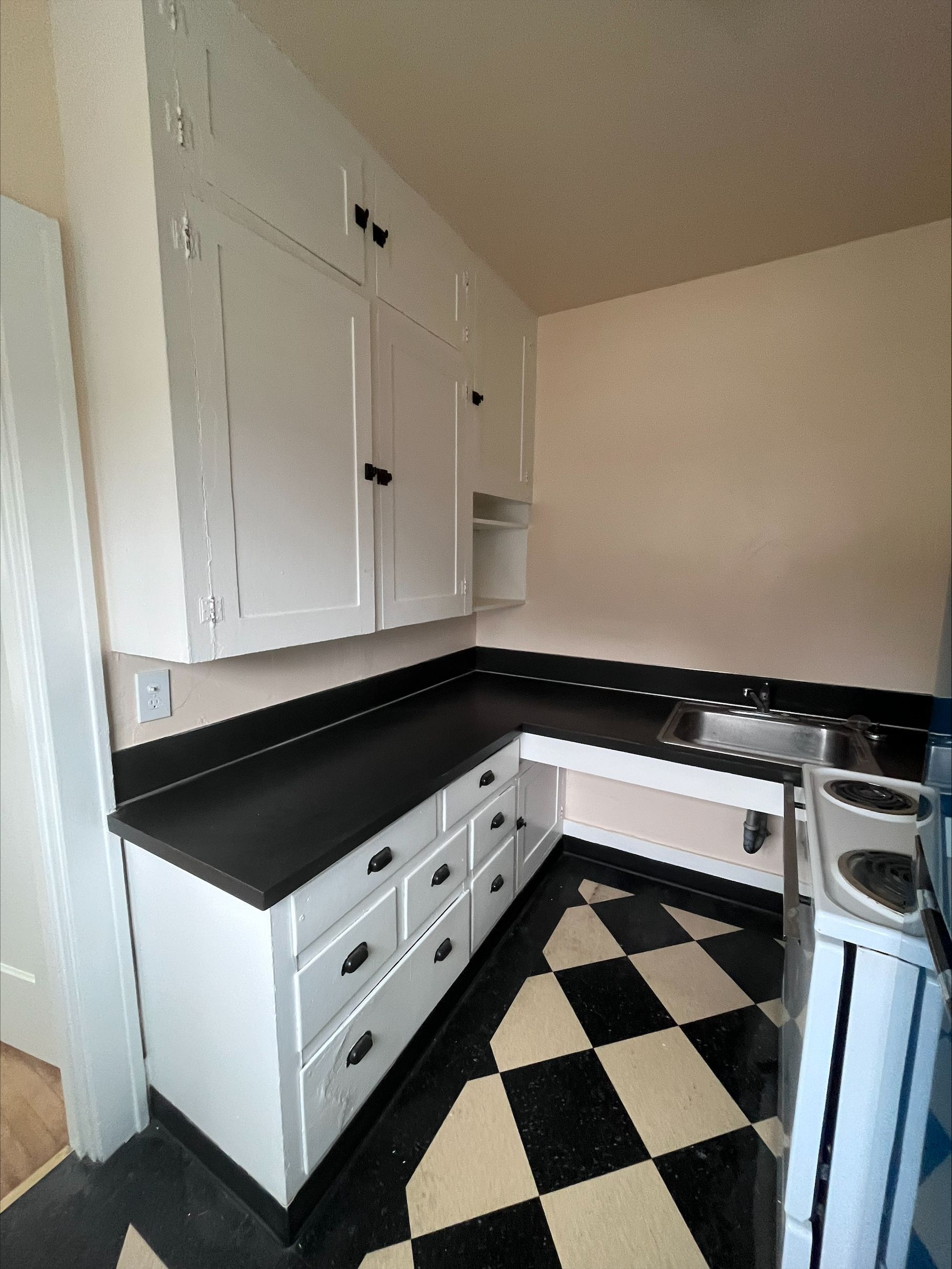 A mix of efficiency studios and spacious studio and one-bedroom apartments, the units have high ceilings, hardwood floors, vintage tiled bathrooms, new energy insulated windows and updated electric forced air heat. There is a convenient community laundry room and ample bicycle storage in the basement. Many apartments feature spacious walk-in closets.
