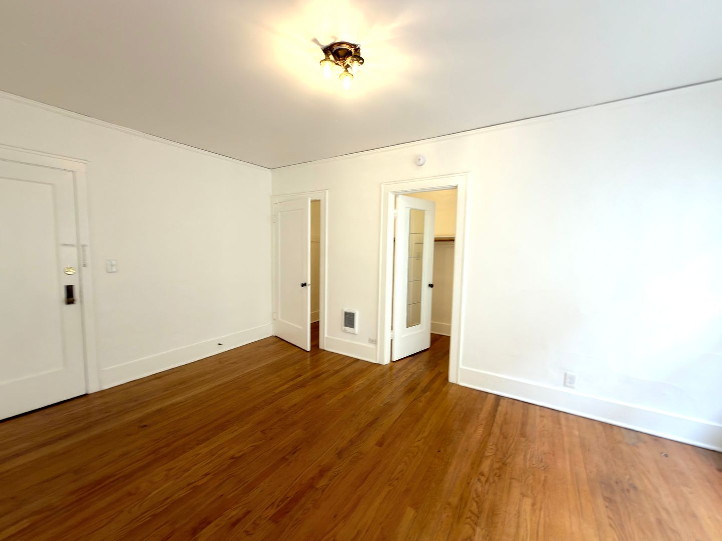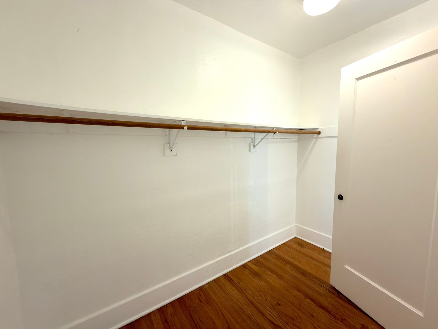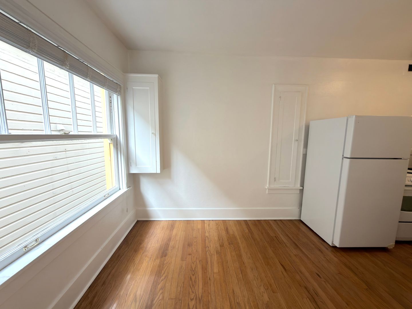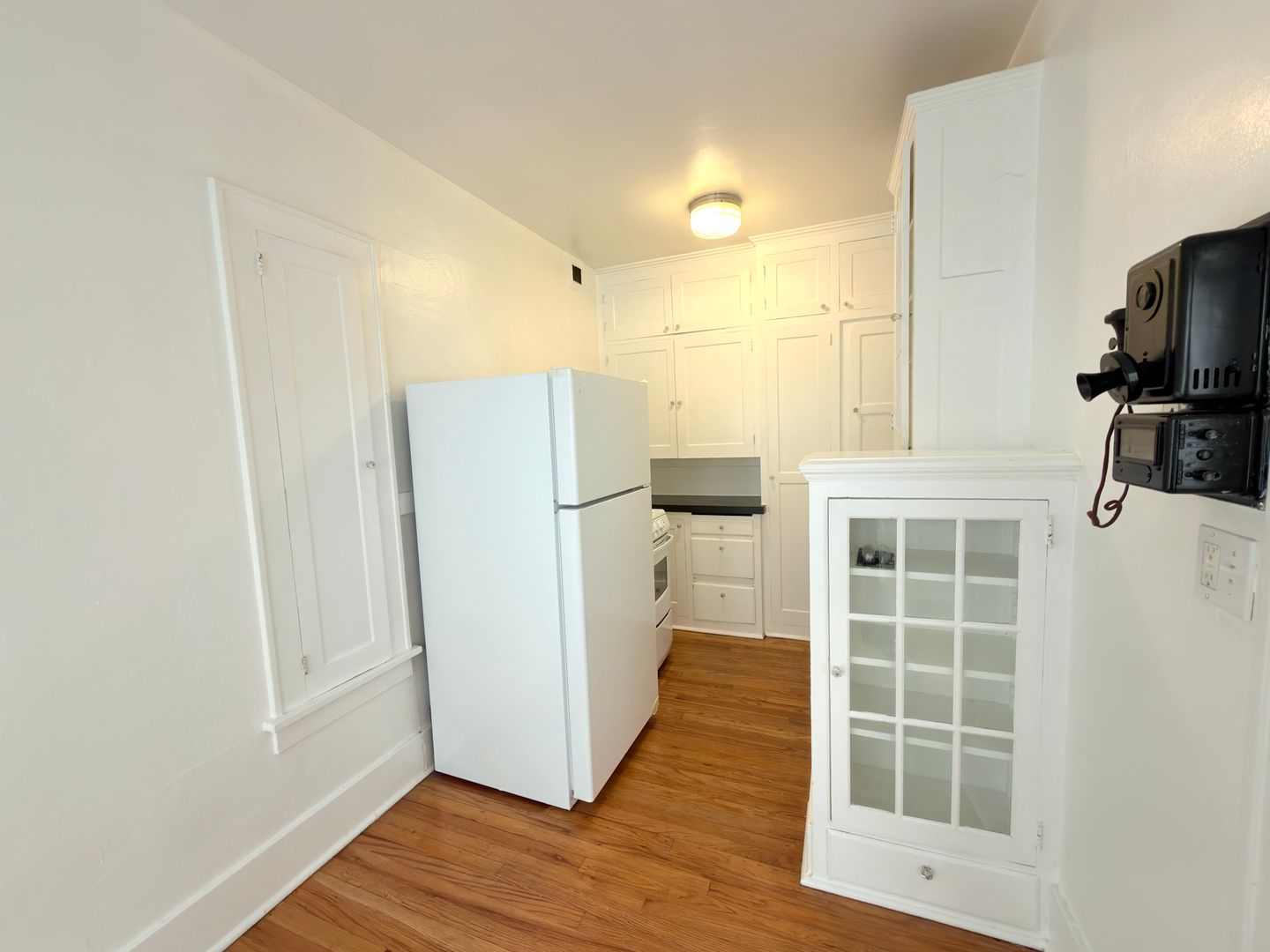 This apartment offers a HUGE closet with separate dining/work space nook. It is 400 sq. ft. large with tall, west-facing windows for great indirect light, period light fixtures, Huge walk-in closet, original tile countertops, hardwood floors and original built-ins.