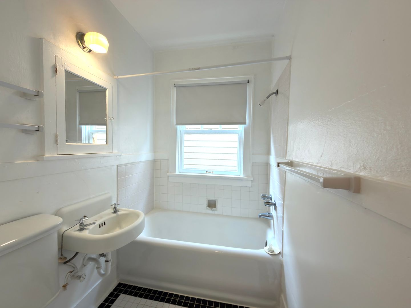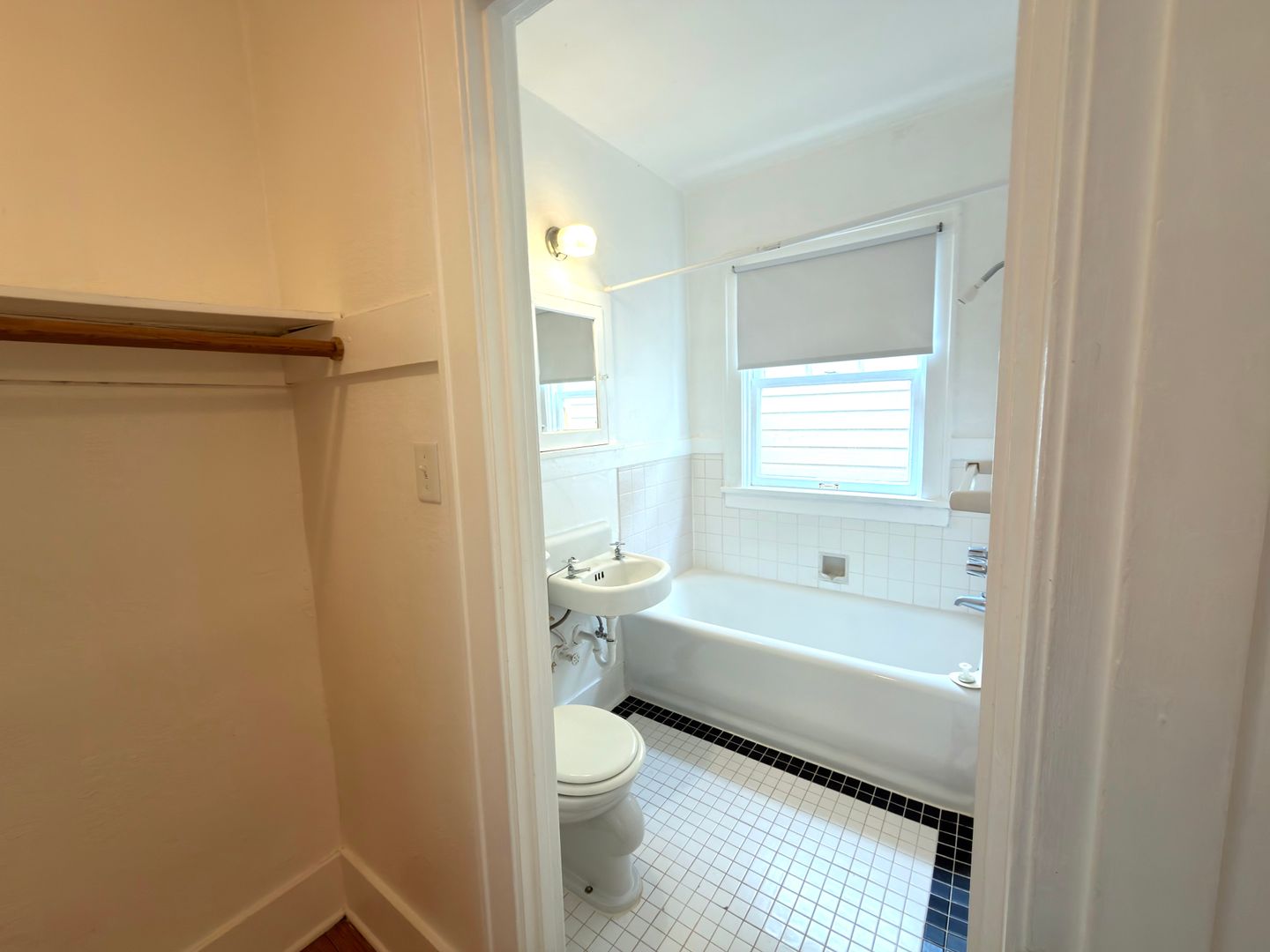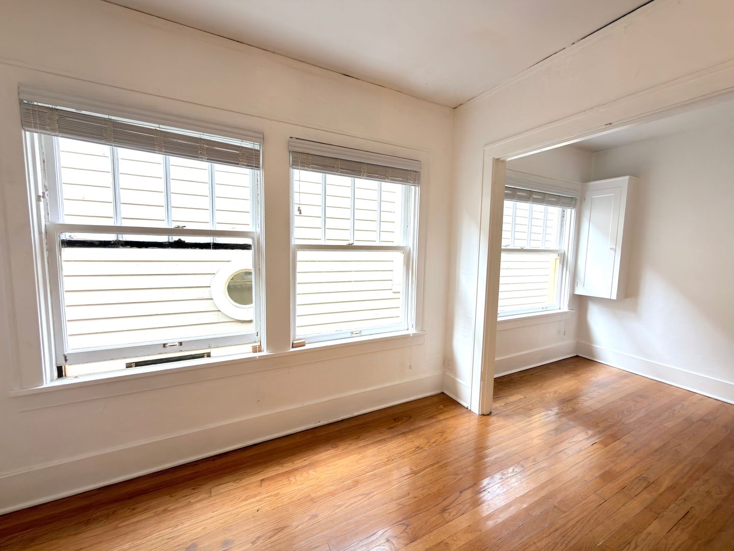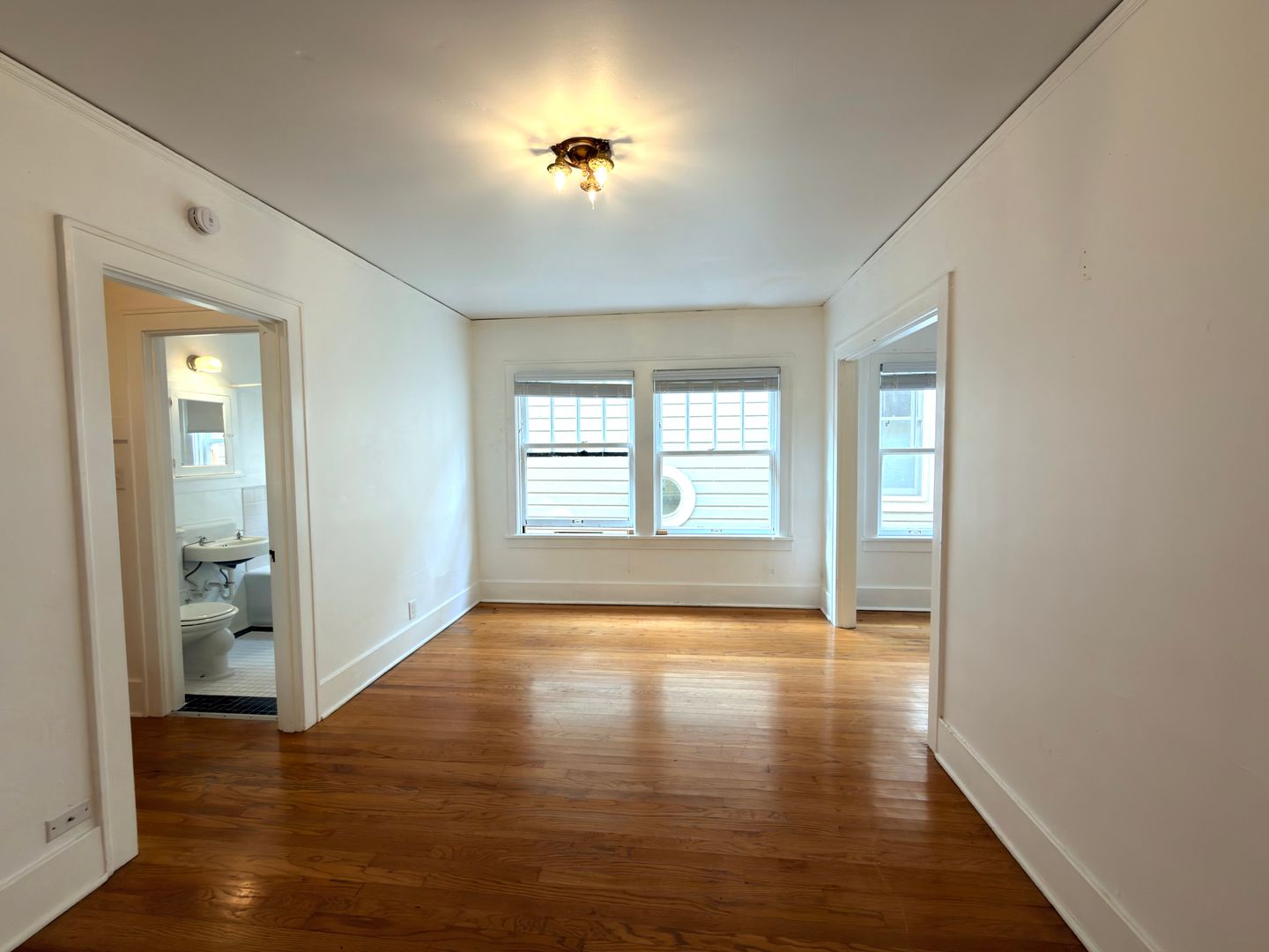 This apartment offers a HUGE closet with separate dining/work space nook. It is 400 sq. ft. large with tall, west-facing windows for great indirect light, period light fixtures, Huge walk-in closet, original tile countertops, hardwood floors and original built-ins.