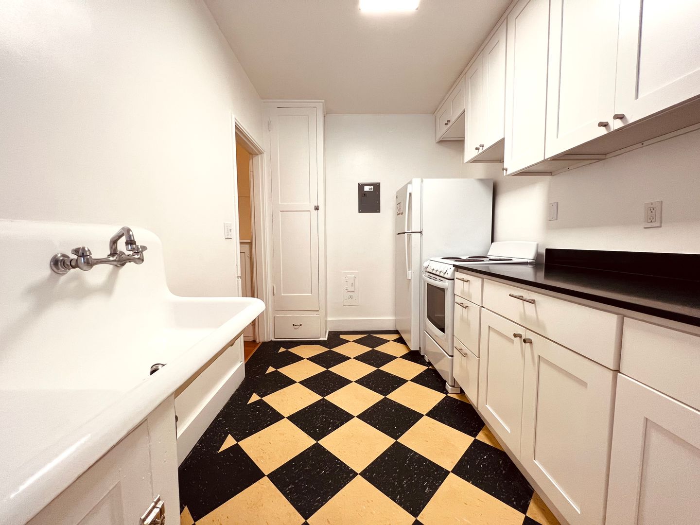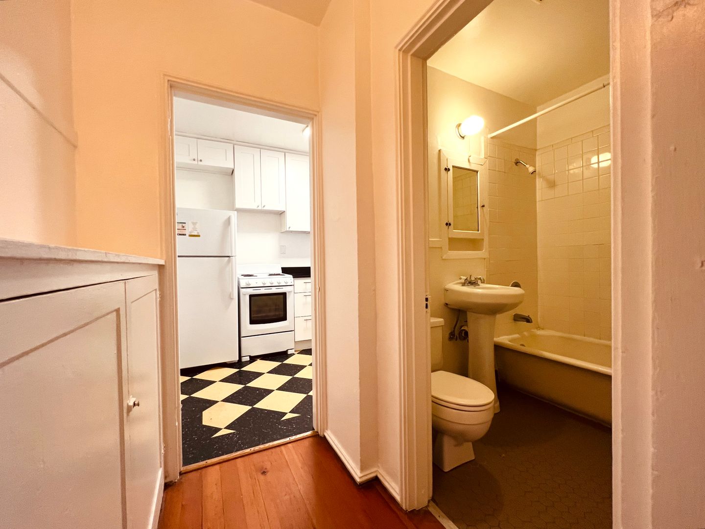 Explore a vintage-inspired studio apartment where classic charm meets modern comfort. The sunroom adds a touch of timeless elegance, while the walk-in closet and built-in shelves offer convenient storage solutions. In the kitchen, natural light streams in through the sunroom, creating a bright and inviting space. This top-floor apartment is a delightful blend of classic design and modern amenities, making it an inviting place to call home.