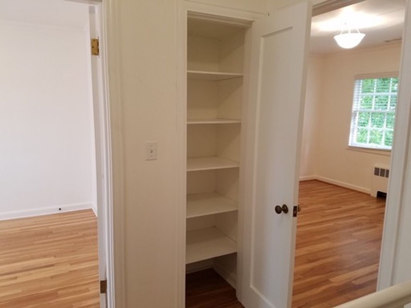 This classic floorplan offers patios at the front and back door entries. Restored original 1948 red oak hardwoods. On the first floor there is a spacious living room, dining room, kitchen and coat closet under the stairs. We renovated the kitchen with new flooring, white subway tile back splash and the stainless steel appliance package has a dishwasher. There is a black crystal chandelier in the dining room to add to the charm. Upstairs in the bathroom there is a linen closet, pedestal sink and hand laid slate tile flooring and tub surround. The second bedroom has dual French closet doors and the master bedroom as a walk in closet with a window. The bedrooms are separated with a linen closet and high ceilings tops it off.