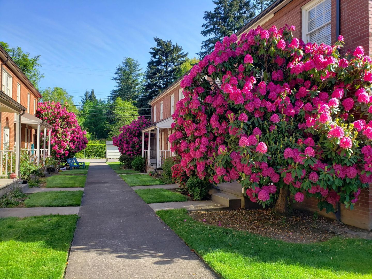 Tucked in the southwest hills of Portland Broadmoor Manor lies in an exceptional location the distinctive Raleigh Wood neighborhood of Portland. Situated on 3 acres of lush, mature landscaping, you instinctively feel that life has slowed down when you arrive here. Built in 1948 and designed by Oregon-native and renowned architect, Rosco De Leur Hemenway.