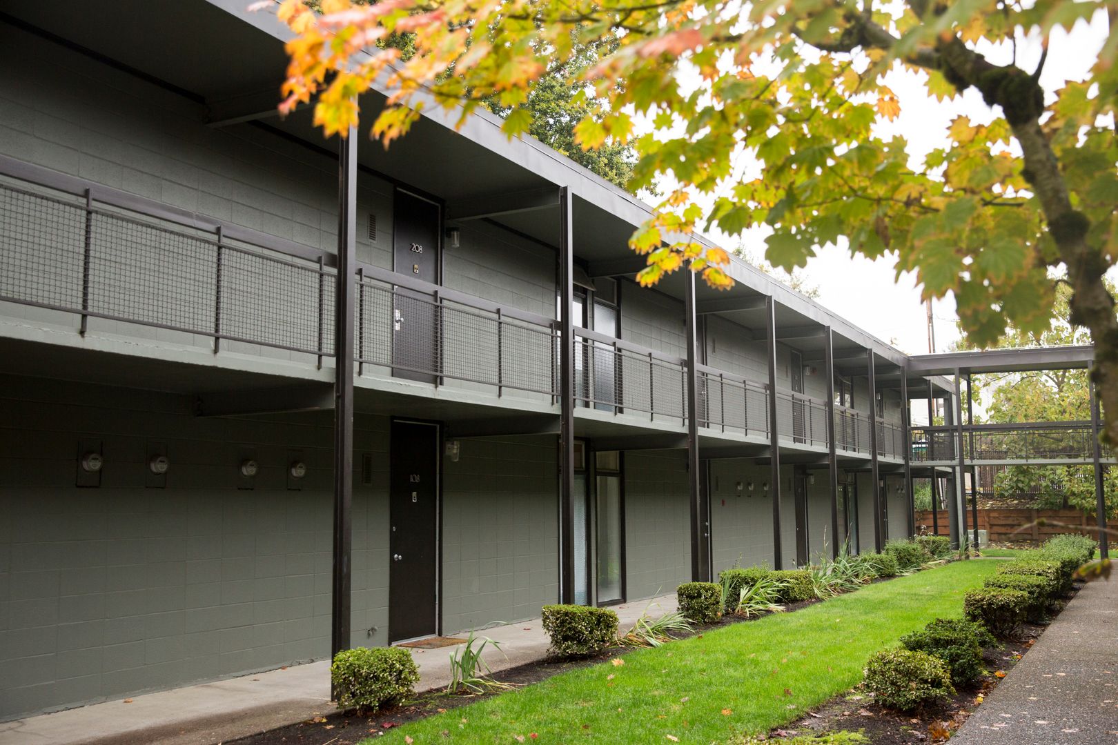 Welcome to Milan Apartments, one of Bristol Urban’s 40+ vintage and historic properties. Nestled in Portland’s coveted Bridlemile neighborhood, Milan features Mid-Century Modern architecture surrounded by mature trees, a peaceful community courtyard, and the soothing sounds of a nearby brook. Renovated in 2016, each home blends 1960s character with modern simplicity and elegance.