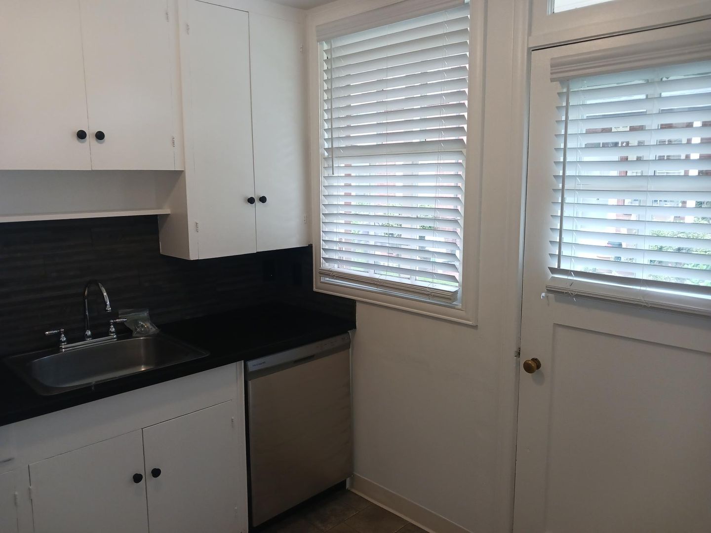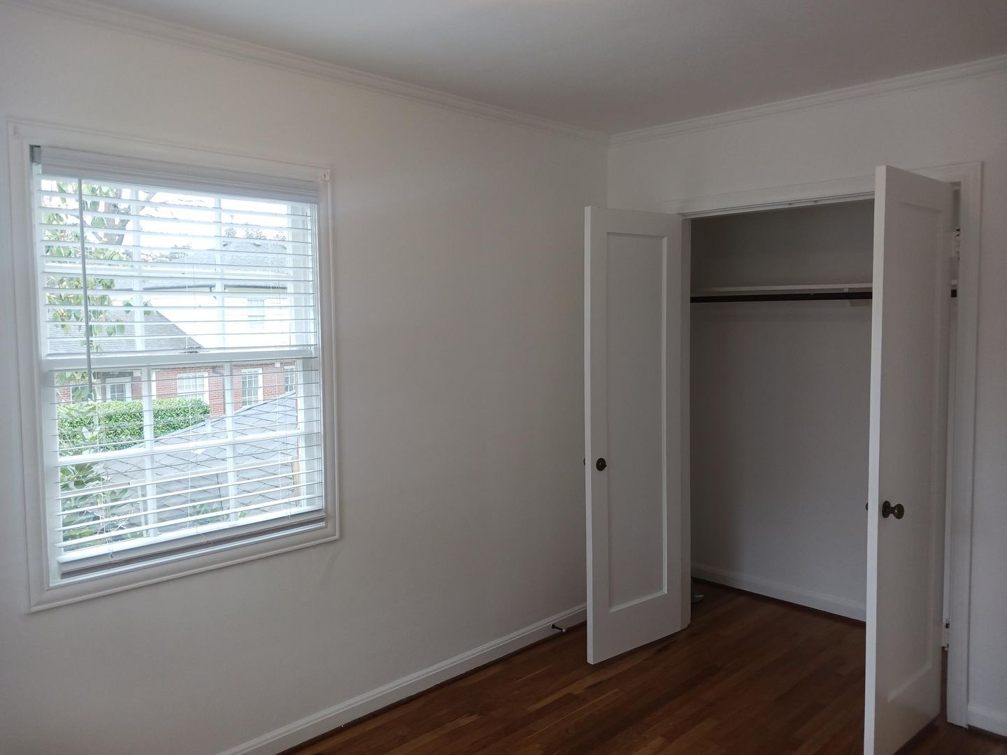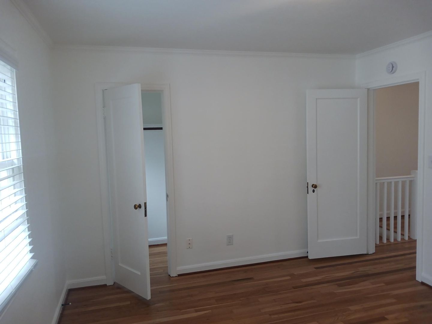 This classic floorplan offers patios at the front and back door entries. Gleaming original red oak hardwood flooring is throughout. On the first floor there is a spacious living, dining room, kitchen and a coat closet under the stairs next to a bookcase. Extra windows in the dining room and upstairs 2nd bedroom. We freshly renovated the kitchen with custom slate tile countertops and an appliance package with a dishwasher. Up the stairs lead to the master bedroom that has a walk in closet with a window and the second bedroom closet has dual French doors.