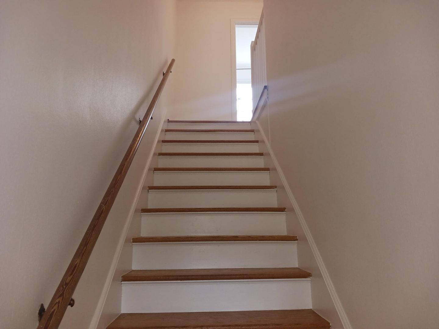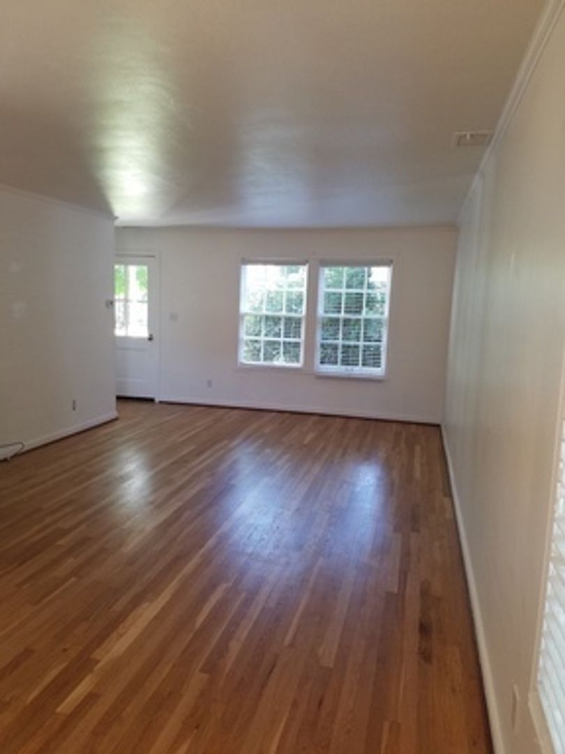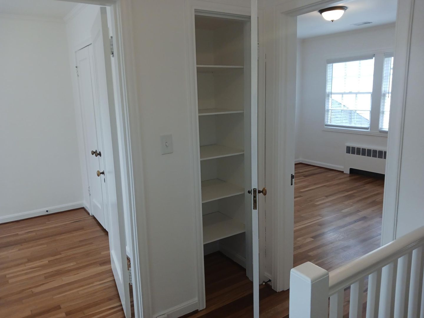 This classic floorplan offers patios at the front and back door entries. Gleaming original red oak hardwood flooring is throughout. On the first floor there is a spacious living, dining room, kitchen and a coat closet under the stairs next to a bookcase. Extra windows in the dining room and upstairs 2nd bedroom. We freshly renovated the kitchen with custom slate tile countertops and an appliance package with a dishwasher. Up the stairs lead to the master bedroom that has a walk in closet with a window and the second bedroom closet has dual French doors.