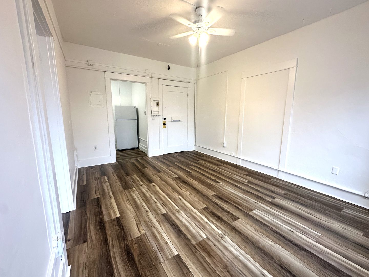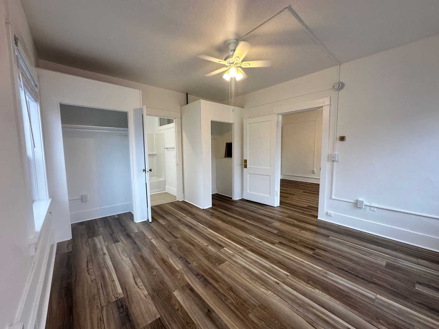 While the apartment retains its historic appeal, it's fresh remodel offers modern amenities to ensure your comfort and convenience. The south facing wall of windows floods the space with light and gives a stunning view of the historic Bagdad Theater just across the street. Available now!