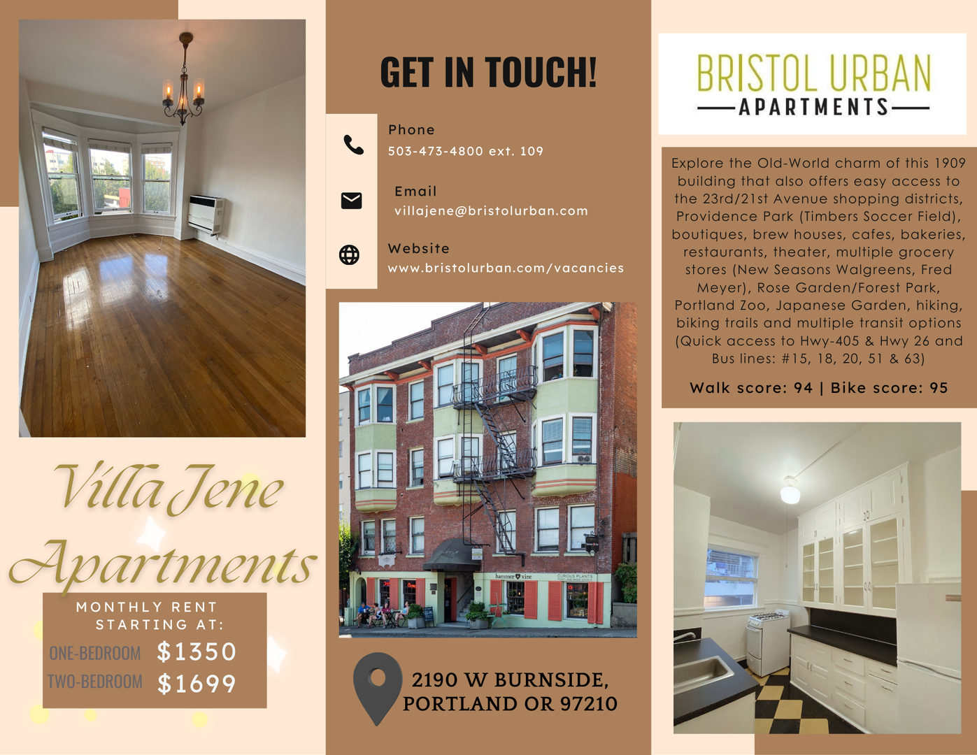 Welcome to the Villa Jene Apartments - Gateway to Historic Portland...One of the 30+ historic and vintage properties owned and managed by Bristol Urban!