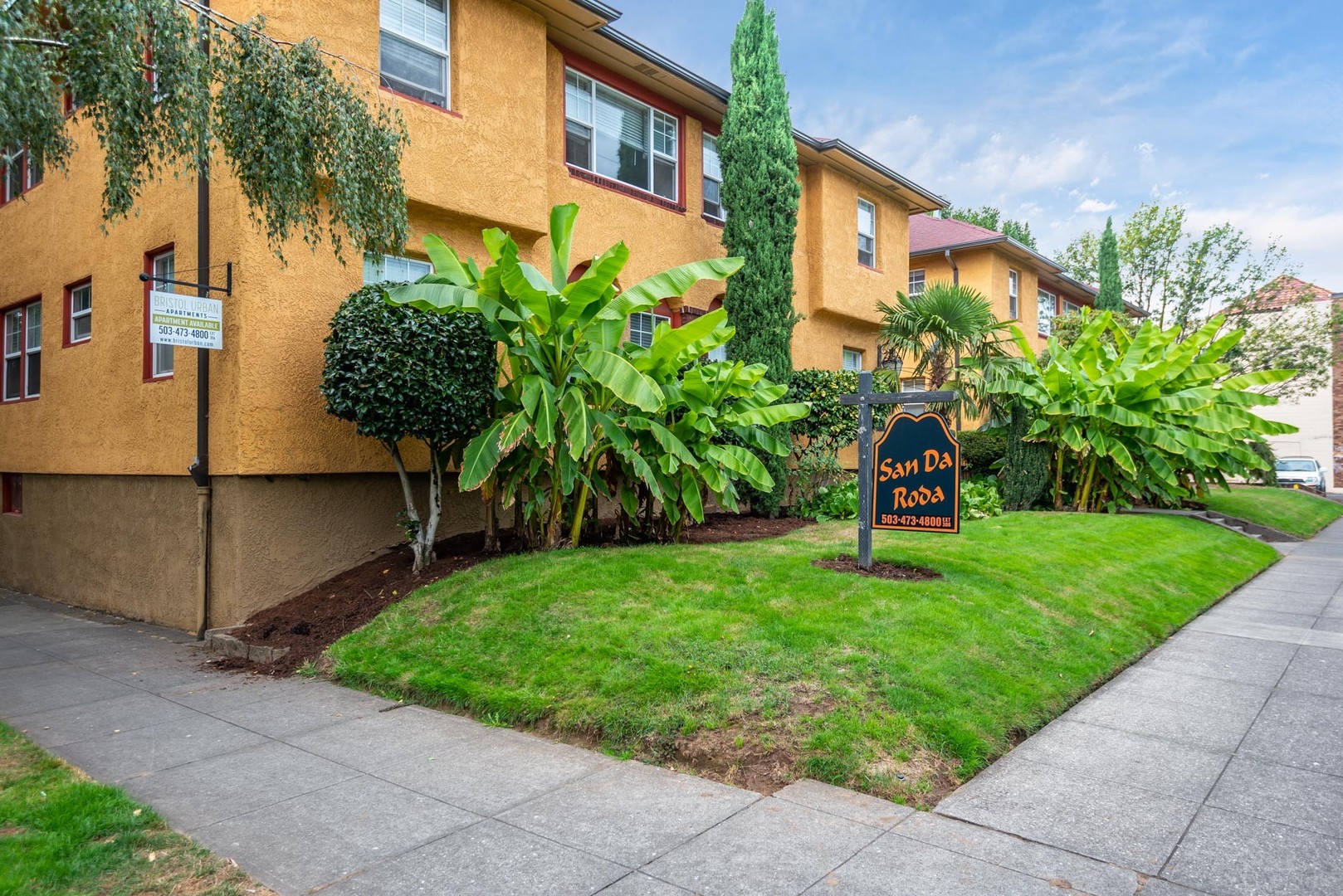 Located in beautiful, residential Northeast Portland, San Da Roda Apartments is a charming example of Portuguese influenced architecture. Built in 1925, the building is rich with details such as brocaded stucco and red tiled roofs. Enter the raised courtyard with mature lush landscaping through graceful wrought iron gates. Inside you’ll find expansive halls, airy stairways, soaring ceilings and richly refinished woodwork.
