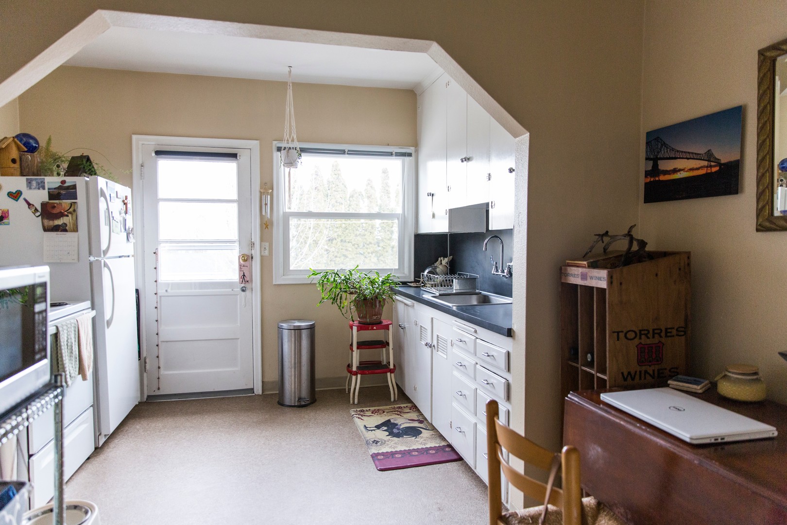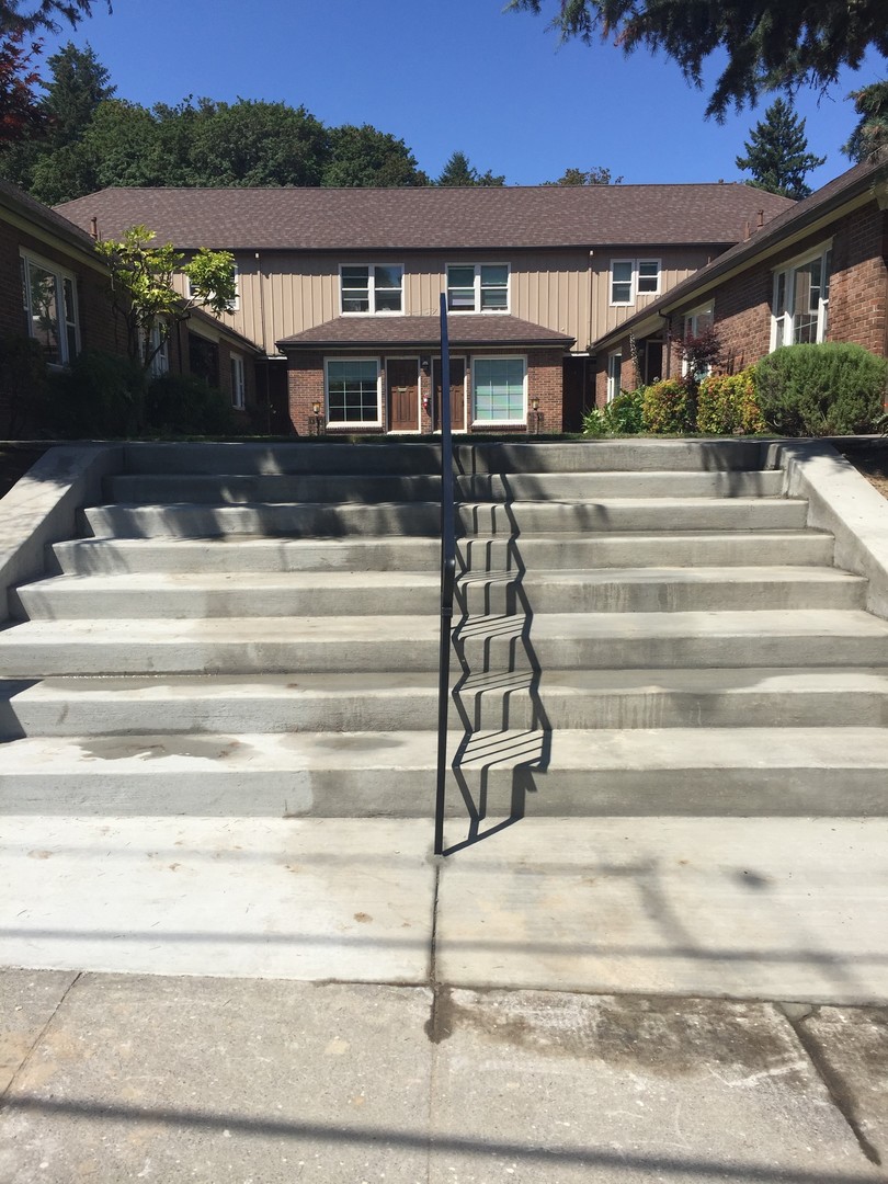 This property has a cozy, tucked-away feel with courtyard entrances, lush greenery, and a touch of classic Portland character. Most apartments feature both a front and back entrance, with bright kitchens that open to the outdoors. A couple of homes sit just above it all, offering elevated views of the surrounding neighborhood for a more private, loft-like feel.