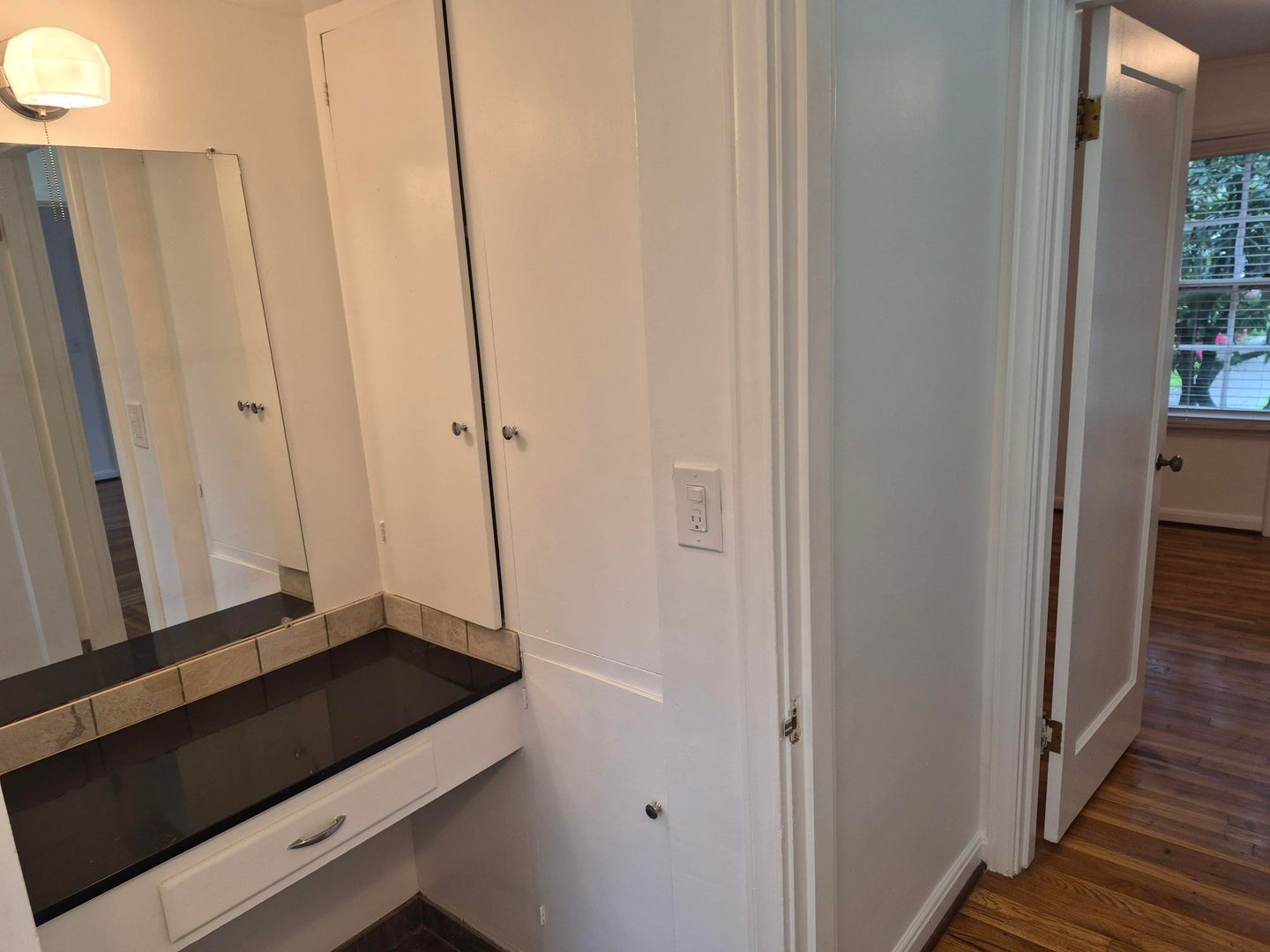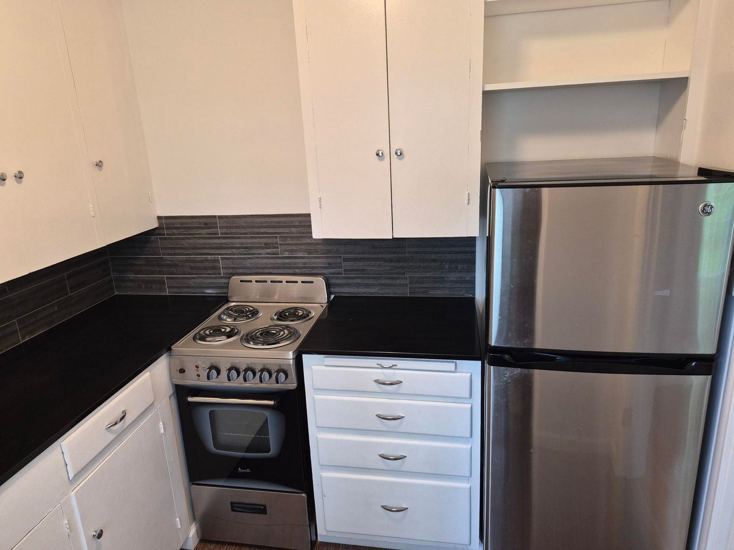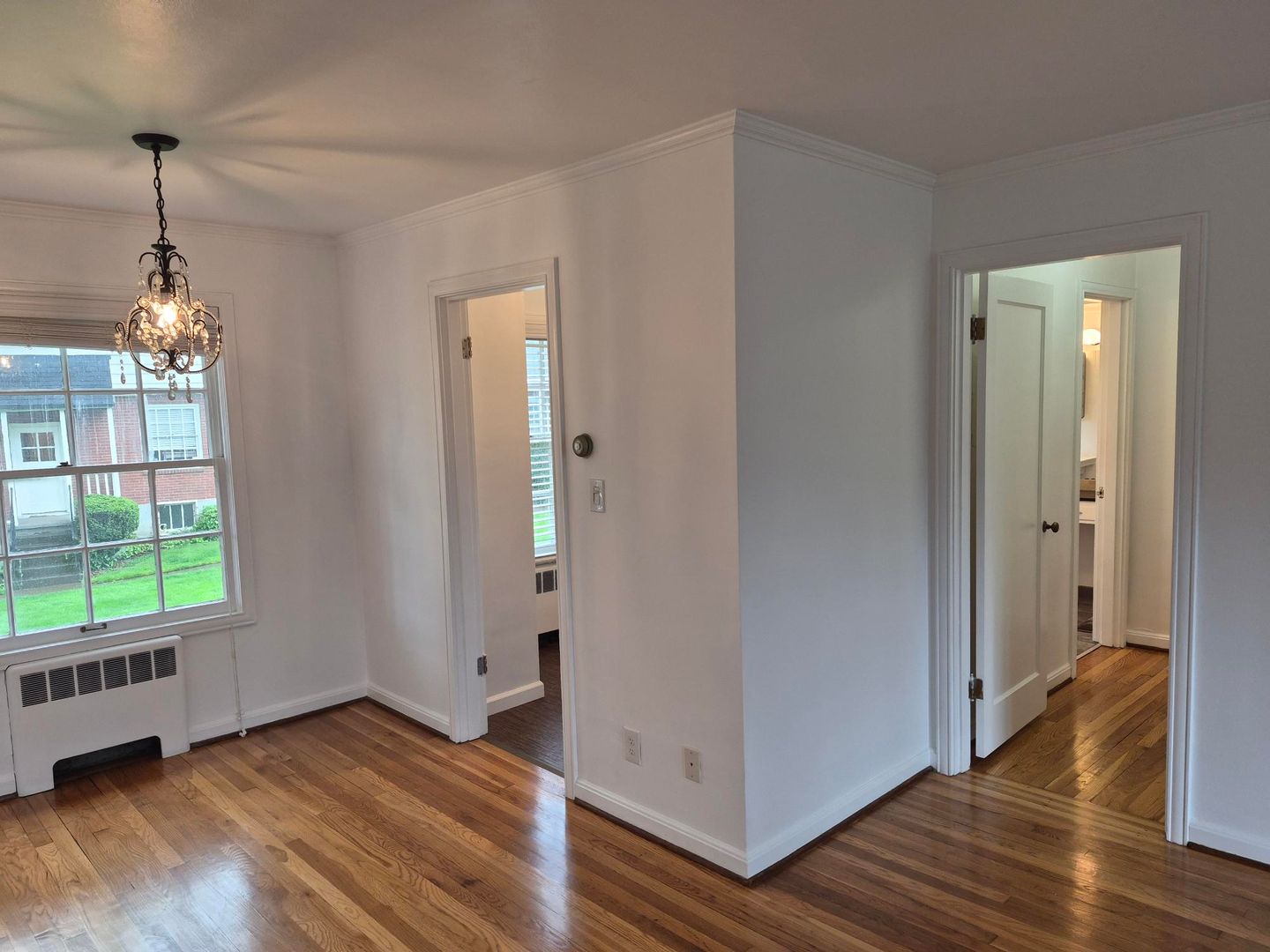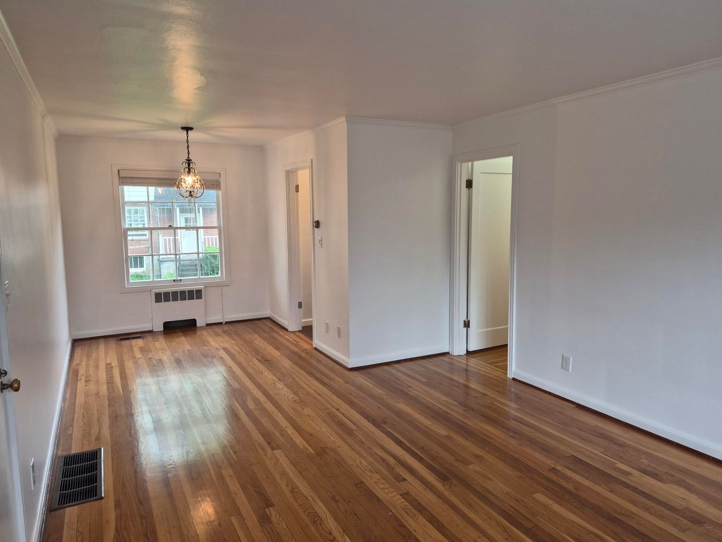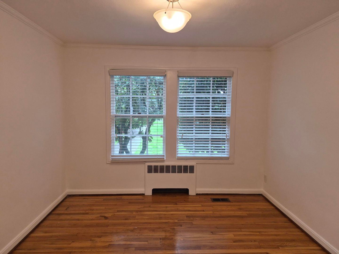 Located on the first floor, garden level of the building. Gleaming restored original hardwood flooring meets you at the entry and continues throughout. The living room has a large bay window with seating and a nook perfect for a dining room or home office with a black and crystal chandelier. The kitchen has been renovated with quartz countertops and slate porcelain tile backsplash, flooring and a stainless-steel appliance package. There is also a closet that can be used as cleaning storage or you can add shelving to make it a pantry. In the bathroom there is a mirrored vanity, hand laid slate tile flooring, tub surround and a linen closet with a pedestal sink. The bedroom has a walk in closet and vintage charm to spare!