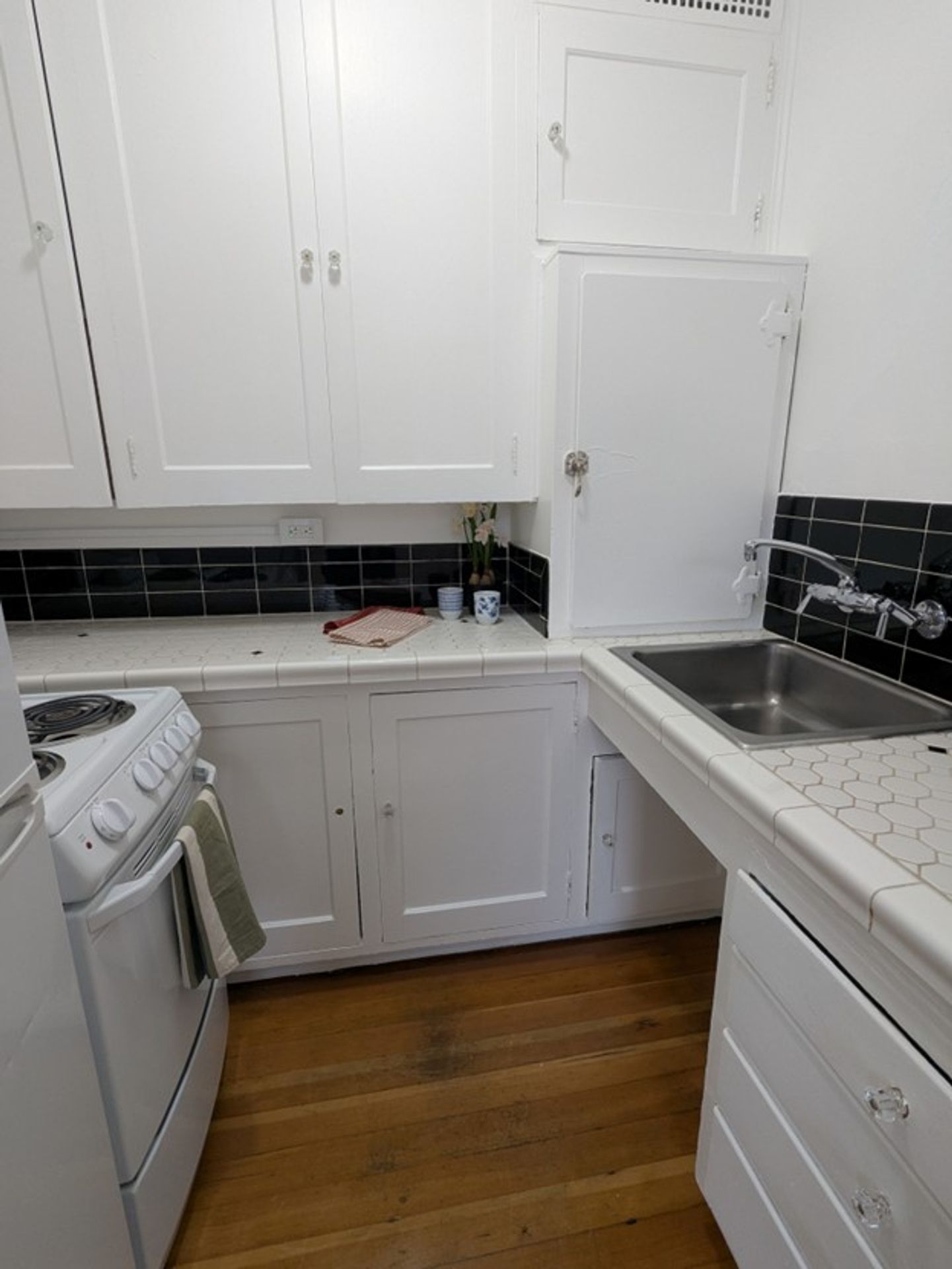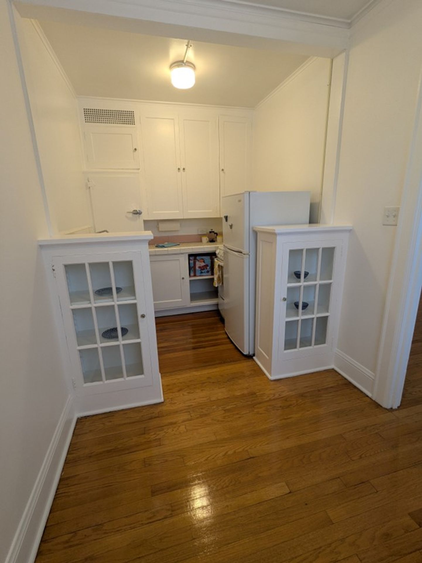 Fall in love with this charming building. Built in 1929, this beauty houses studios with refinished hardwood floors, vintage lighting, tile in baths and kitchens, glass cabinetry.