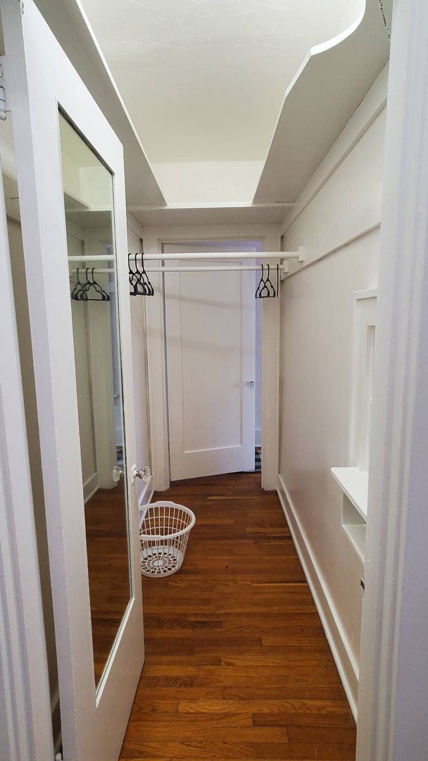 > This unit is located on the top/third floor with a view into the West hills and above the view line of our neighboring building. This corner unit has western windows that see out across 18th, a walk-thru closet, and ample cabinetry in the kitchen! You'll find indoor bike parking and app- operated laundry. No gas in the building means one less utility bill!