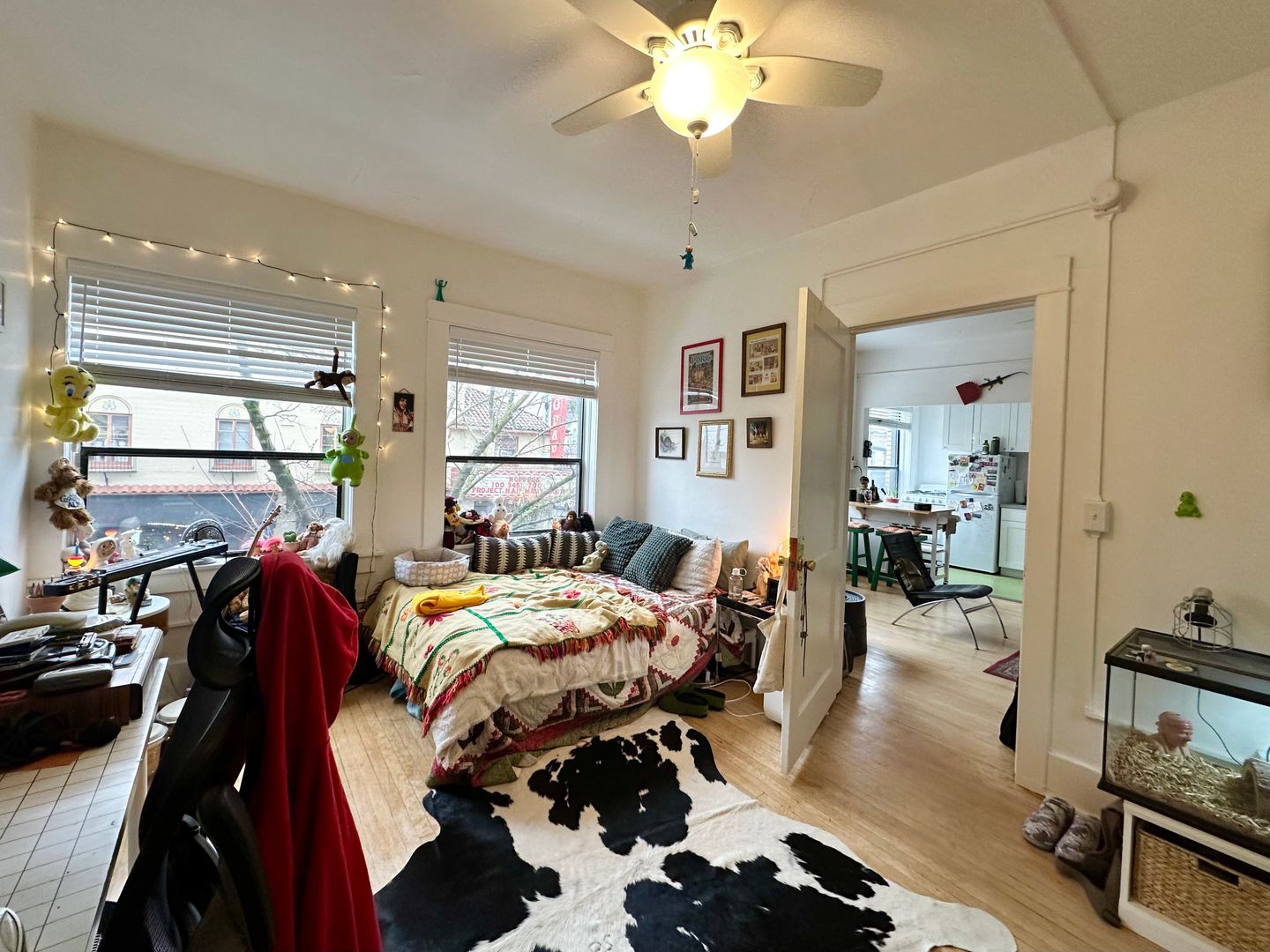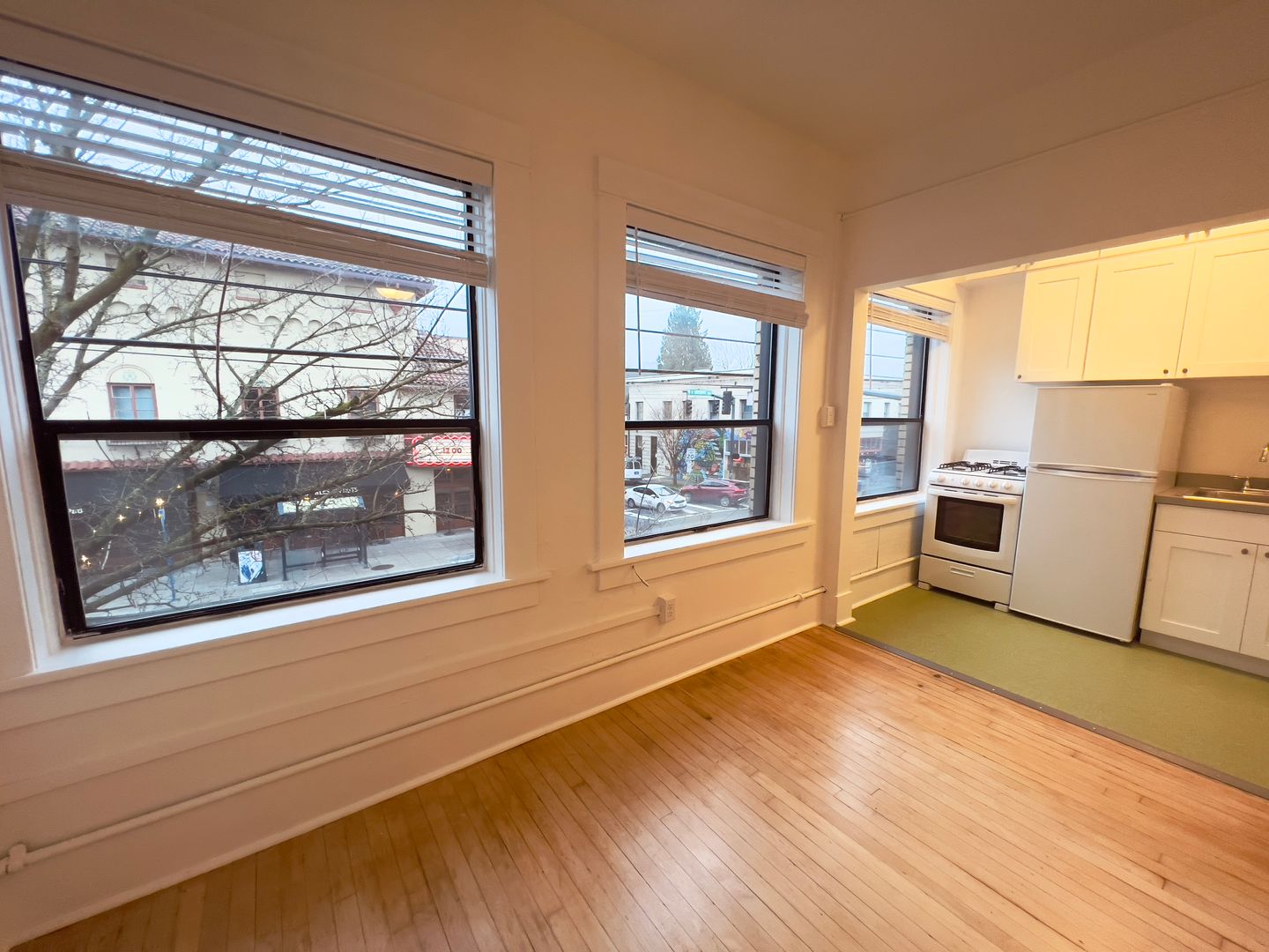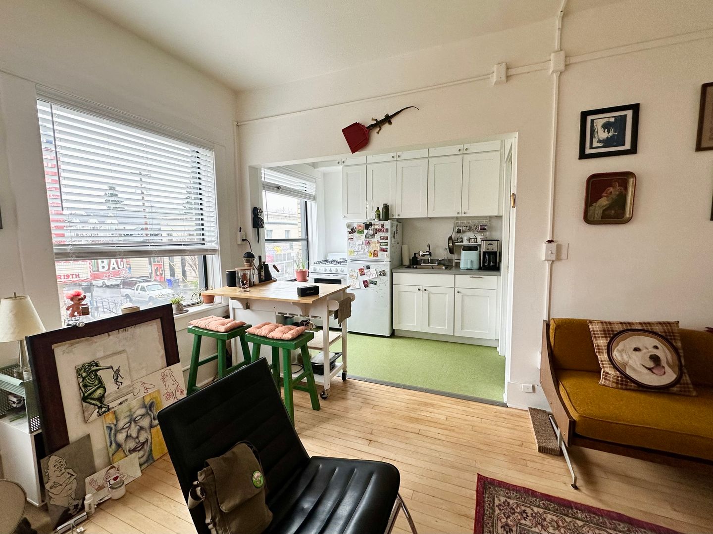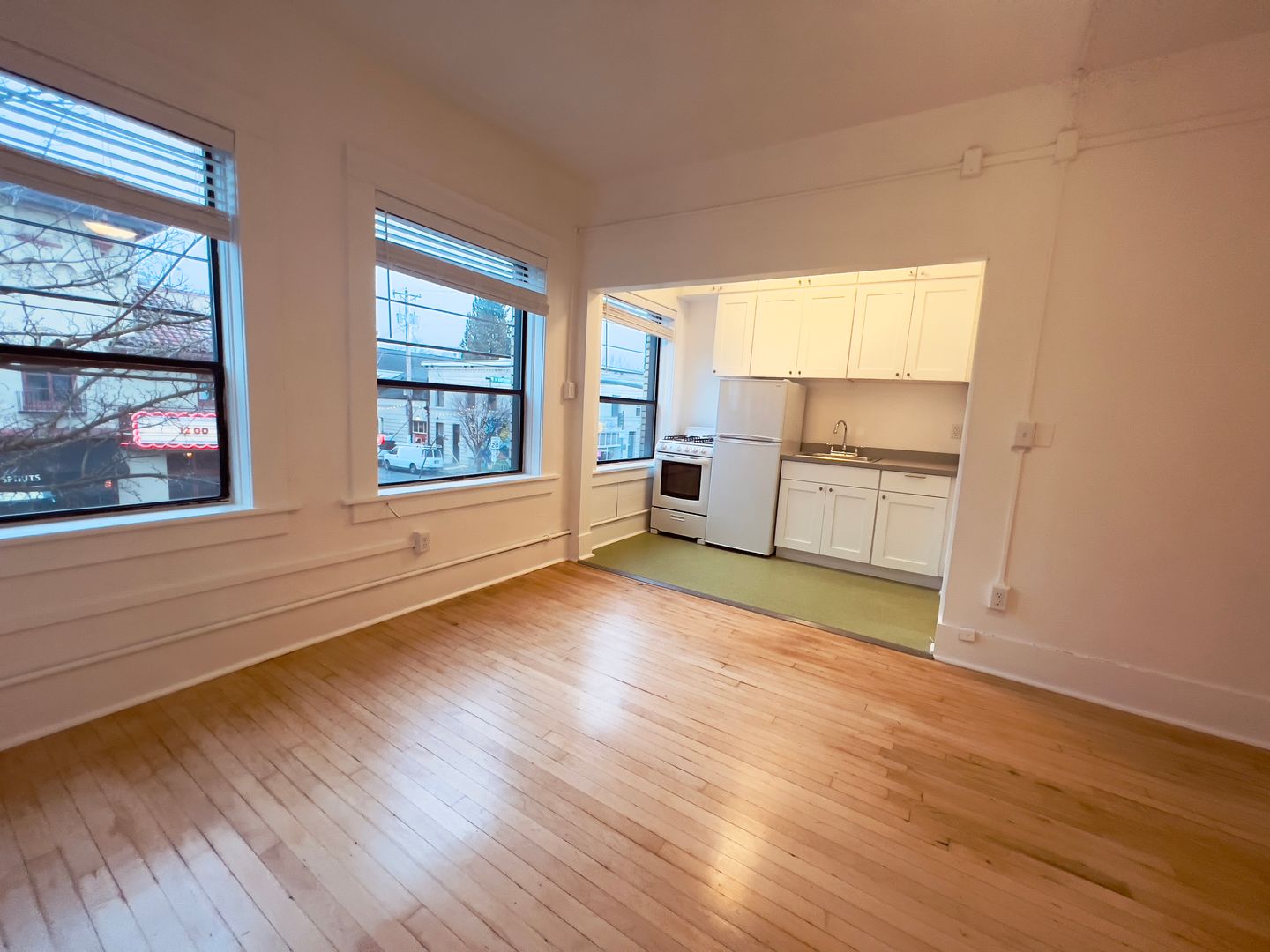 While the apartment retains its historic appeal, it's fresh remodeled kitchen offers modern amenities to ensure your comfort and convenience. The south facing wall of windows floods the space with light and gives a stunning view of the historic Bagdad Theater just across the street!