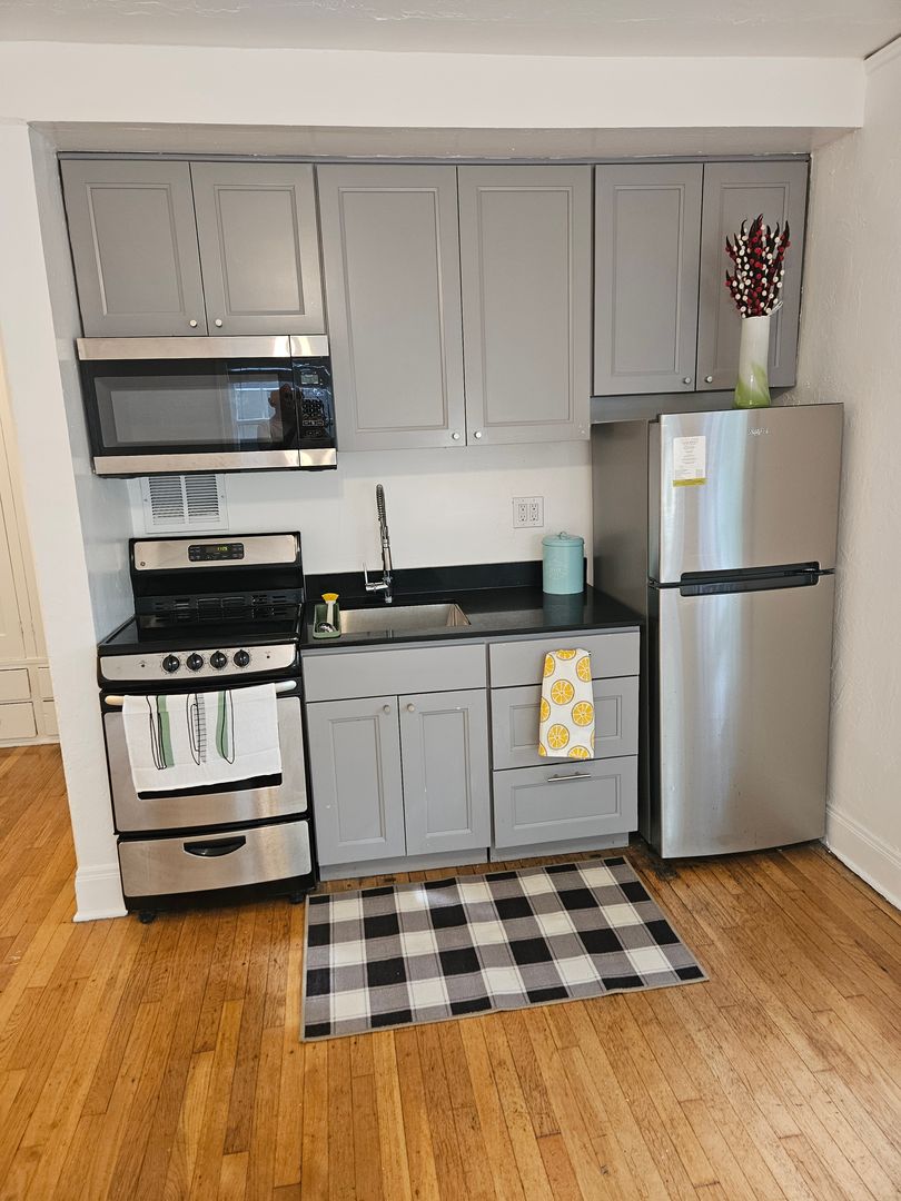 This spacious studio is in the rear of the 100-year-old Greenway building, in the historic Alphabet District, away from street noise, with three windows looking out from the top floor. Hardwood floors, an upgraded kitchen with stainless appliances, on-site laundry, bike storage area, free Wi-Fi, a dedicated professional maintenance team, and on-site management, are just some of the features you'll find here.