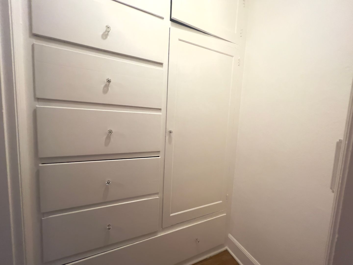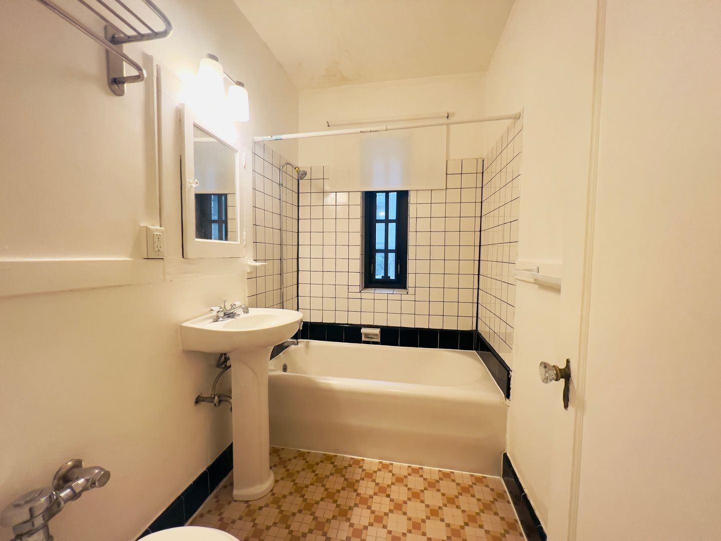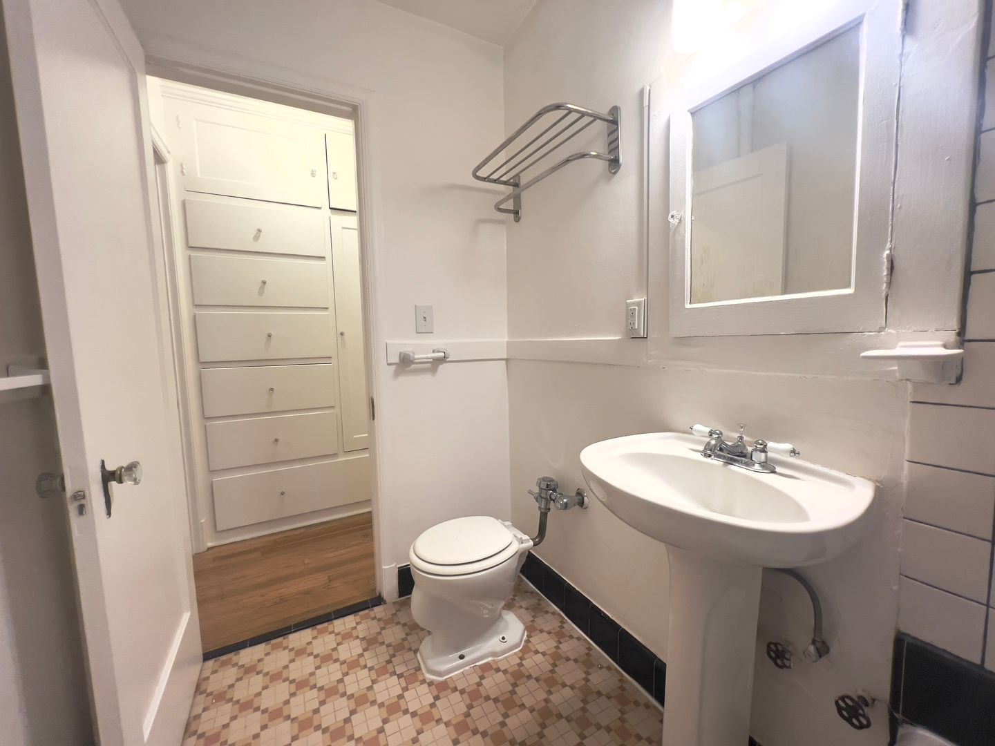This 2nd floor western-facing studio apartment is a great space with wonderful light. Enjoy the refinished hardwood floors in the kitchen/dining room, multiple closets, a floor-to-ceiling built-in armoire, dining nook, pedestal bathroom sink and lots of cabinets in the kitchen.