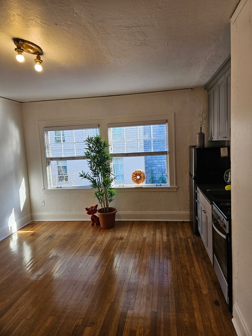 Big windows facing east for morning sunshine, hardwood floors, abundant storage featuring a built-in armoire, and an all-electric kitchen are just some of the features of this 3rd-floor unit in the middle of Portland's lively NW district.