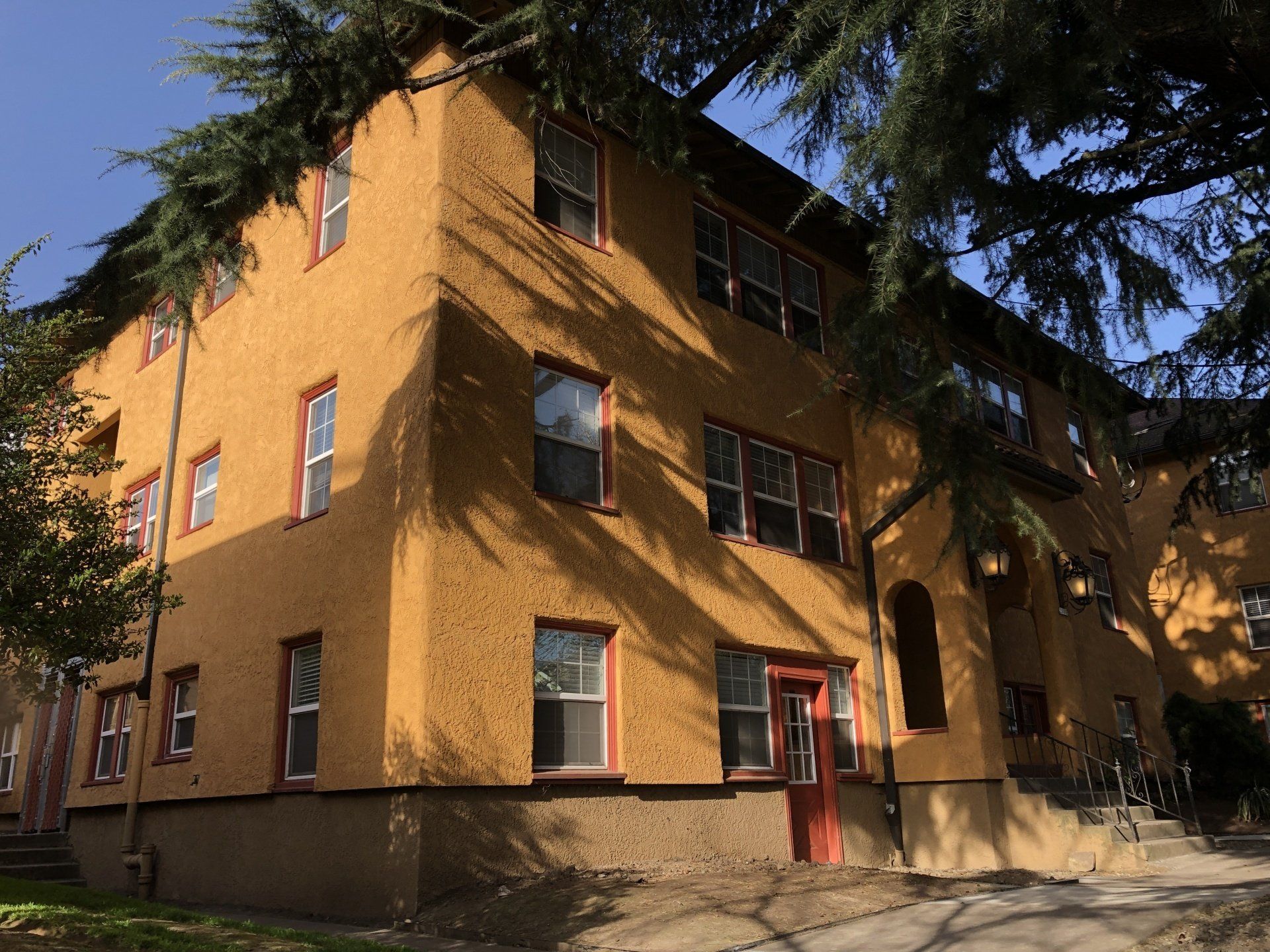 San Da Roda Apartments is a charming example of Portuguese influenced architecture. Built in 1925, the building is rich with details such as brocaded stucco and red tiled roofs. Mature, lush landscaping frames the raised courtyard as you enter through graceful wrought iron gates. Inside you’ll find expansive halls, airy stairways, soaring ceilings and richly refinished woodwork.